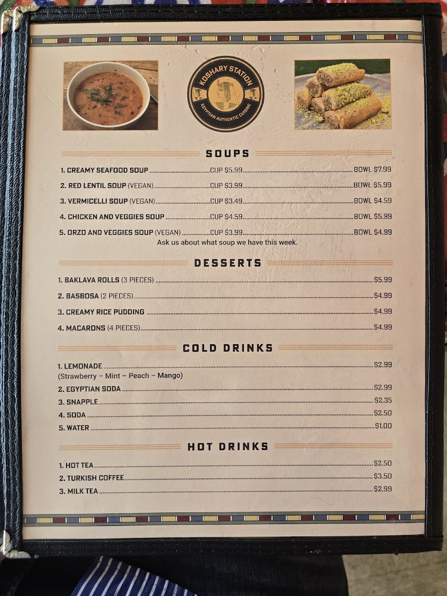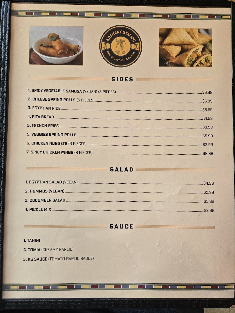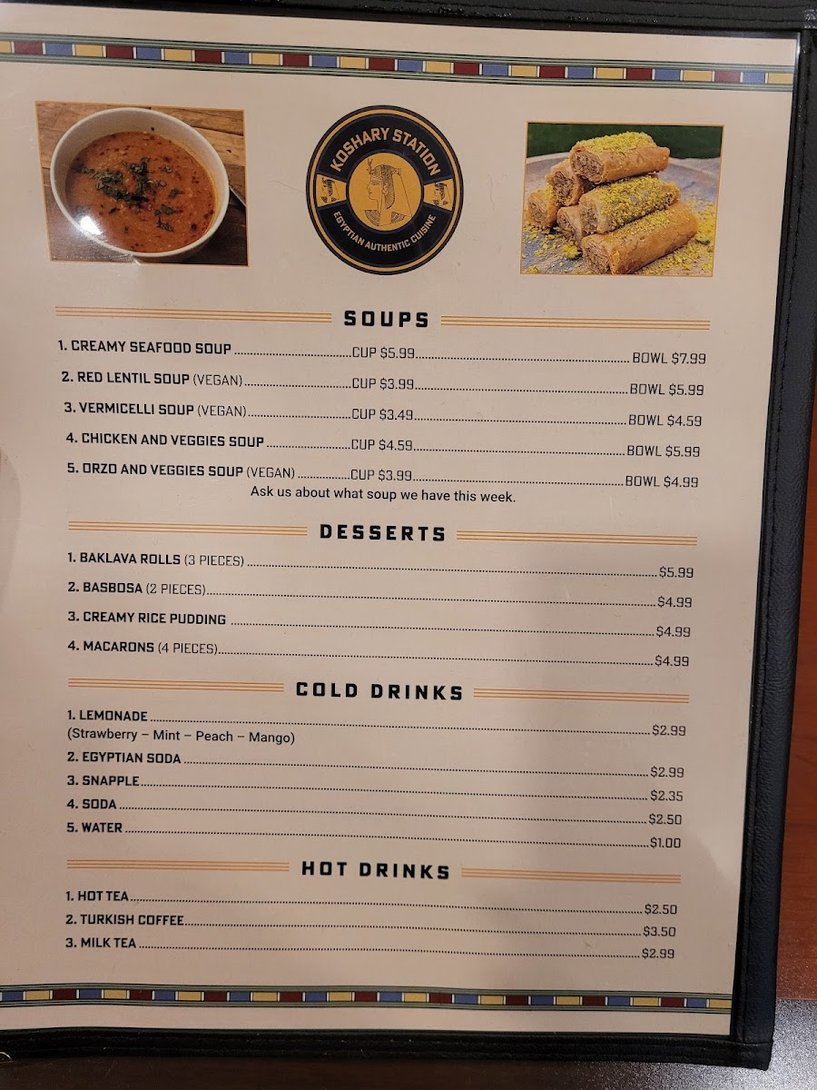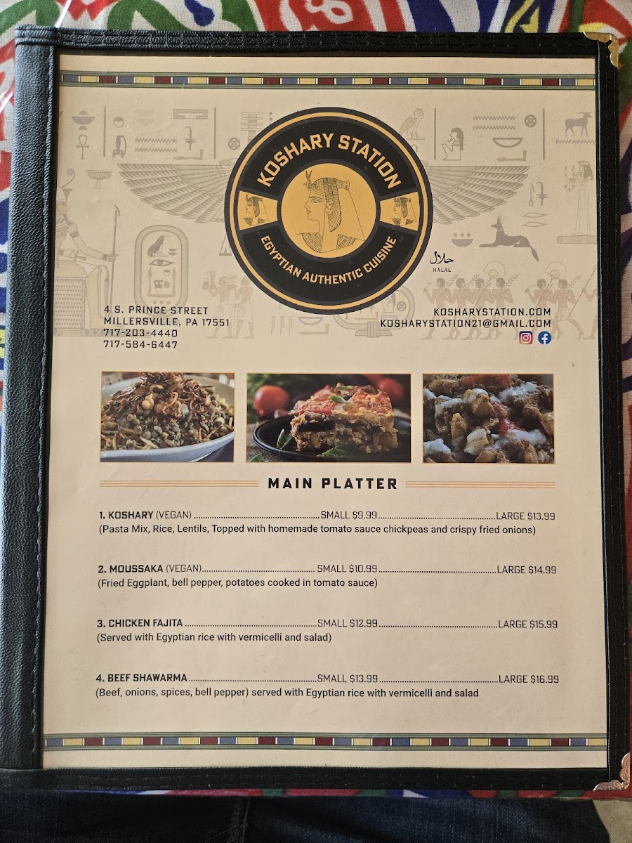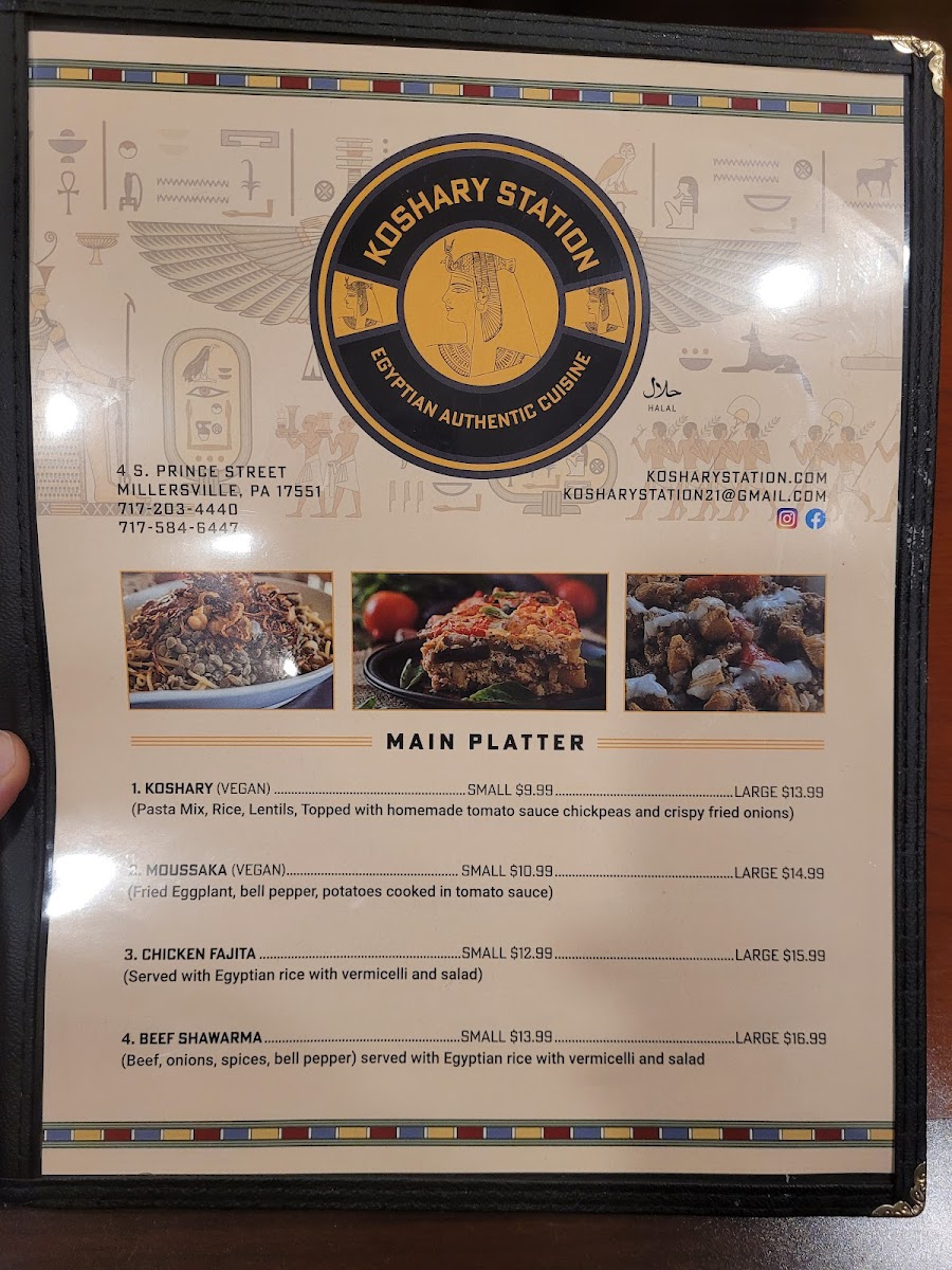 At Koshary Station Menu, you’re in for a treat! Nestled in the heart of Millersville, PA, this cozy spot brings the rich, comforting flavors of Egyptian cuisine right to your plate. Whether you’re a long-time fan of Koshary or trying it for the first time, there’s something for everyone. The menu features a variety of traditional dishes that are carefully crafted with fresh ingredients, making each bite a flavorful experience. From the classic koshary, layered with rice, lentils, and pasta, to savory sides that bring a perfect balance of spices and textures, every item is made with passion and authenticity. The vibrant atmosphere of the restaurant only adds to the experience, as the dishes are not only a delight for the taste buds but a feast for the eyes as well. Whether you’re here for a quick meal or a relaxed dining experience, the Koshary Station Menu offers something to satisfy your cravings.